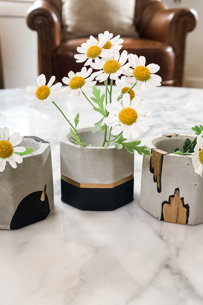 Grow your greens in this hand-poured, hand-painted, black and gold planters by Resting Plant Face.