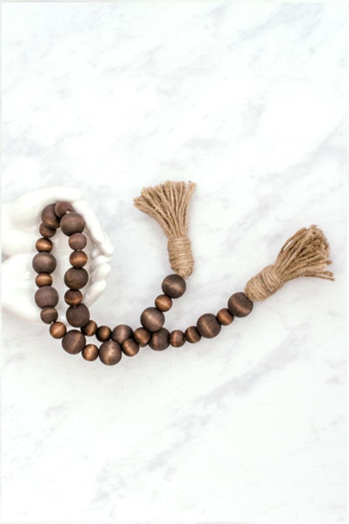 A Rustic Wood Bead Garland created by Ash + Hart Floral