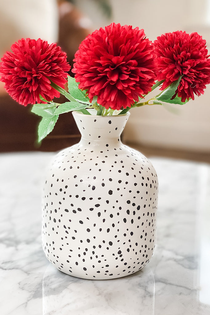 This minimalist, off-white with black dots vase by SouthernChell, is sure to turn heads in your home.