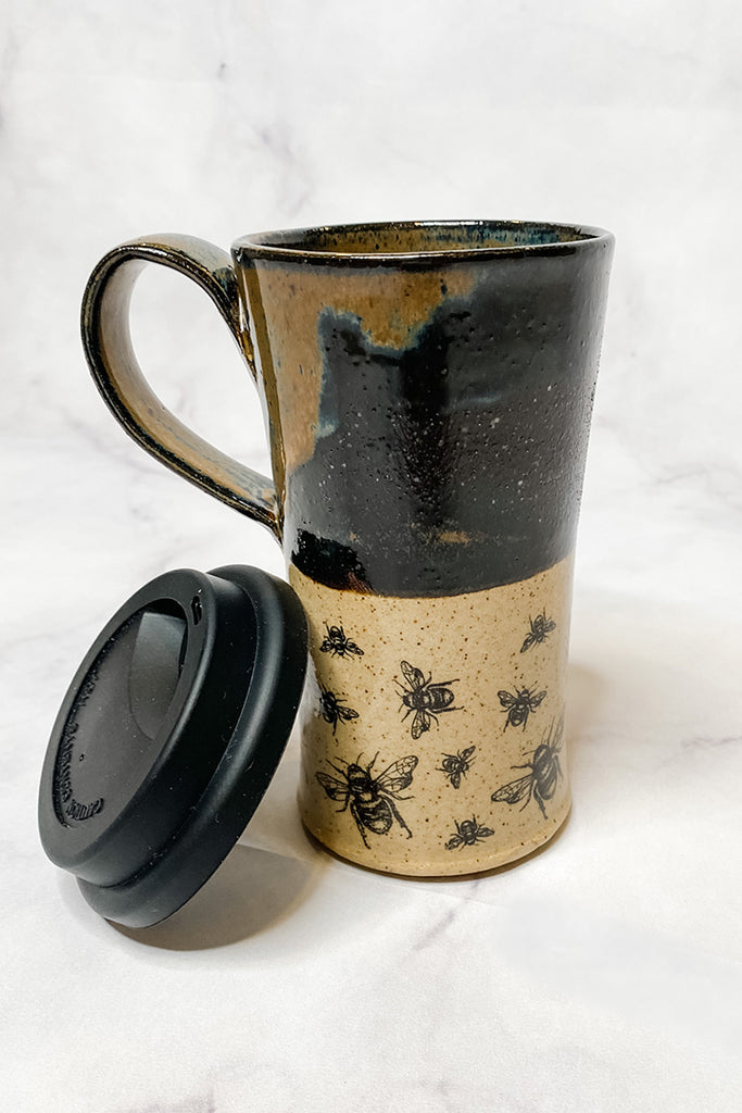 Style: Iron Glazed Bee Scene Travel Mug with Silicone Lid