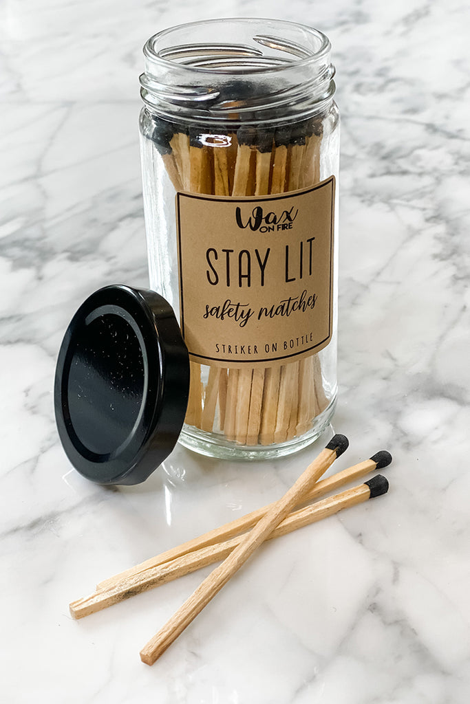 Spark inspiration with these hand-labeled match jars Wax on Fire. Every jar contains approximately fifty matches.