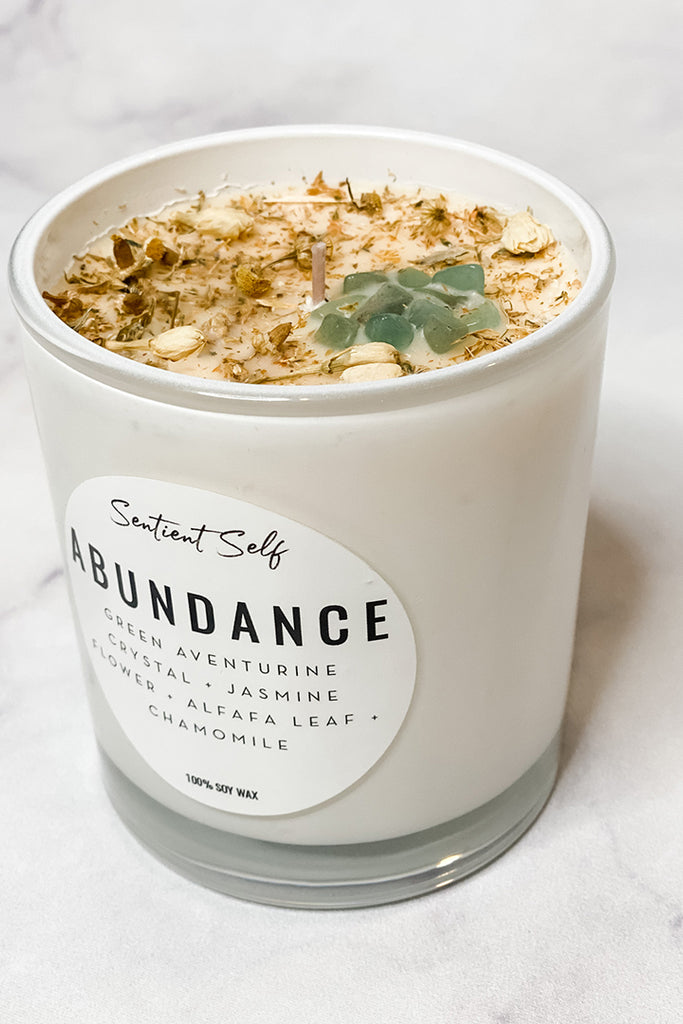 12 oz. 100% soy wax scented candles made with love and special intentions. Made with genuine crystals, Herbs, and love! Each are made by hand and were specially crafted to bring you good vibes, love, abundance and healing!