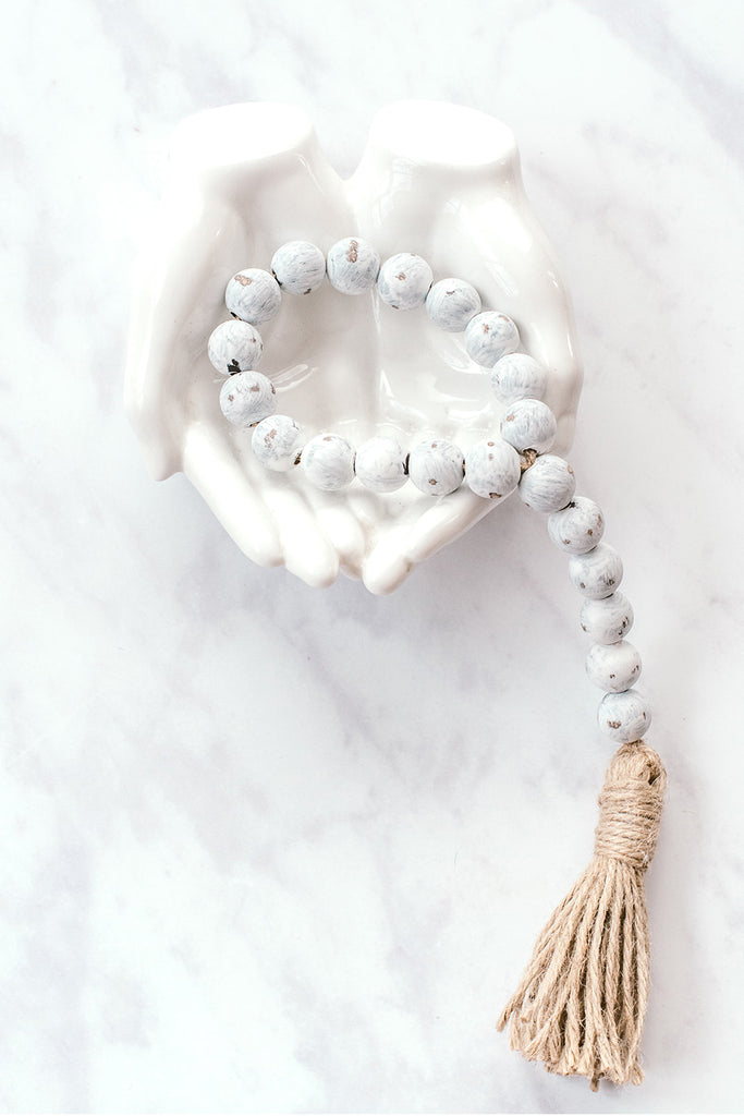 Transform your demijohn jar into an eye-catching silhouette with these White Chippy Demijohn Jar Beads. Designed to fit perfectly over the top of your demijohn jar, these beads not only make a great accent but statement piece. After all, storage should be stylish in any farmhouse home.  Created by Ash + Hart Floral