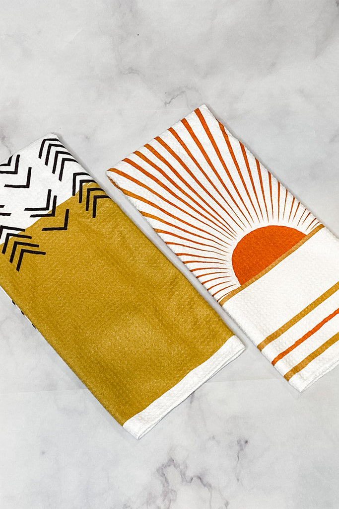Our absorbent dish towels make quick work of damp hands and wet dishes. These towels are a modern aesthetic addition to your kitchen towel collection. This set also makes the perfect housewarming or hostess gift and pairs perfectly with a bottle of wine.