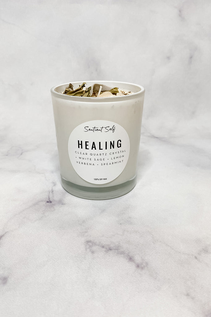 12 oz. 100% soy wax scented candles made with love and special intentions. Made with genuine crystals, Herbs, and love! Each are made by hand and were specially crafted to bring you good vibes, love, abundance and healing!