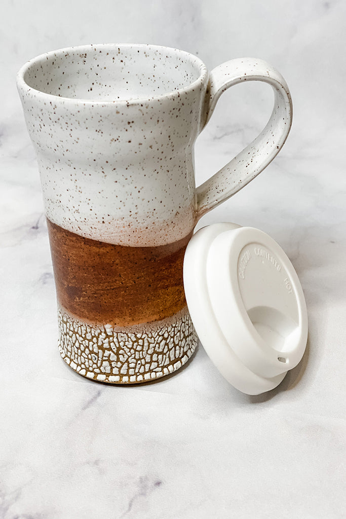 Style: Terracotta with Crackled White Travel Mug with Silicone Lid
