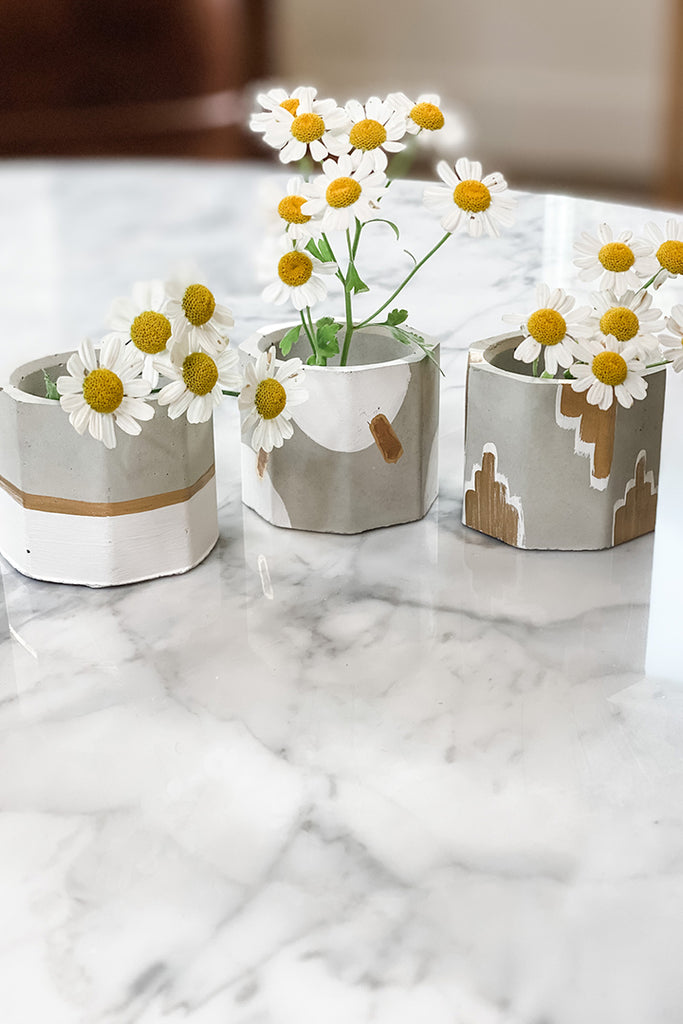 Grow your greens in this hand-poured, hand-painted, gold, and white planters by Resting Plant Face.