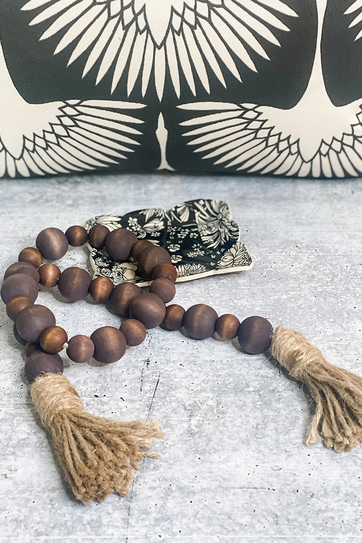A Rustic Wood Bead Garland created by Ash + Hart Floral